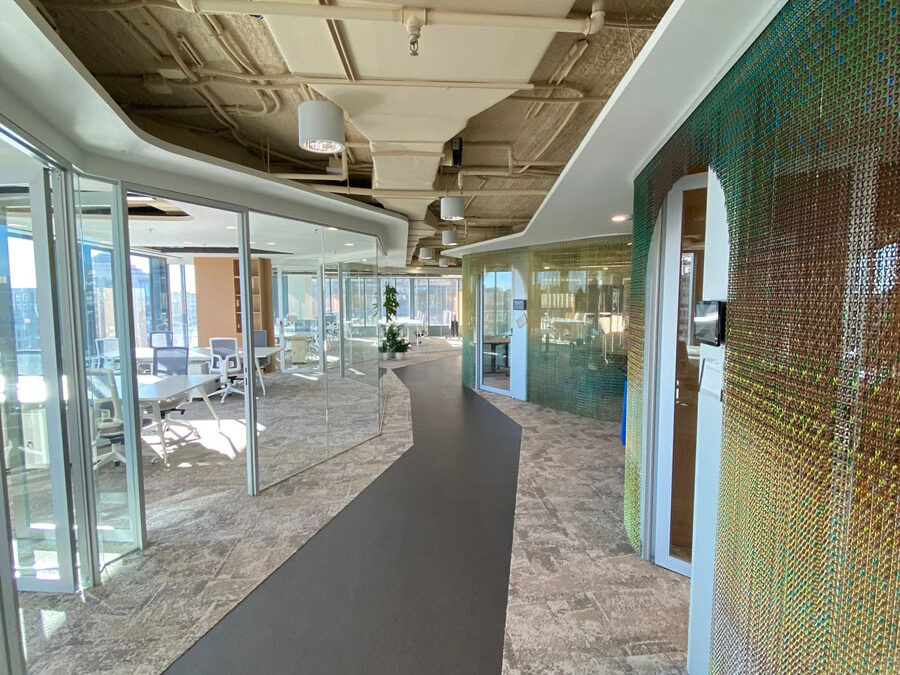La combinación de una planificación rigurosa, innovación en los acabados y la atención a los detalles permitió crear un entorno de trabajo moderno, funcional y visualmente impactante.